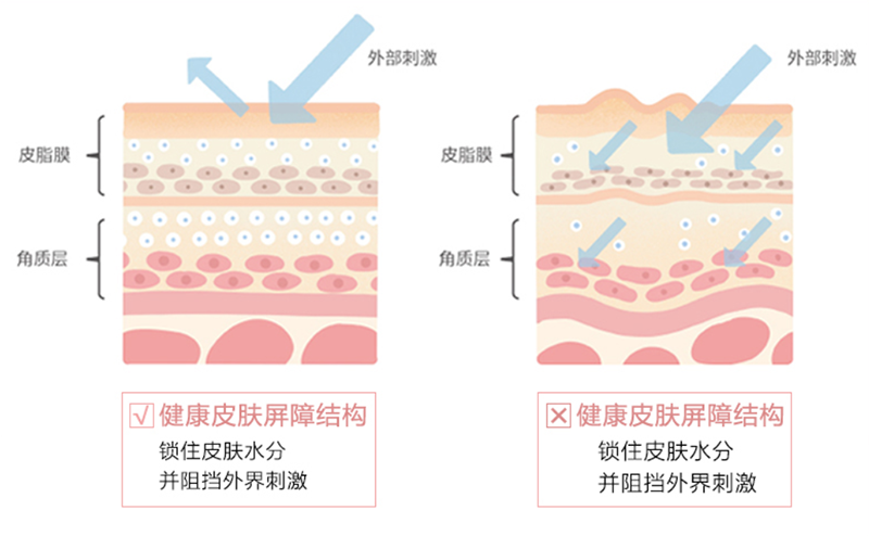 Skin is fragile and sensitive, with damaged sebum film and intolerance to cosmetics; The moisturizing function decreases, the skin is prone to redness, water oil imbalance, uneven pigmentation, and in severe cases, it can also cause rash and itching.
